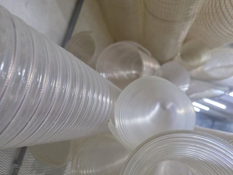 Воздуховод выдерживает постоянные перепады давления, сохраняет прозрачность и не взаимодействует с пищевыми компонентами. Подходит для транспортировки муки, зерна, сахара и комбикорма.
