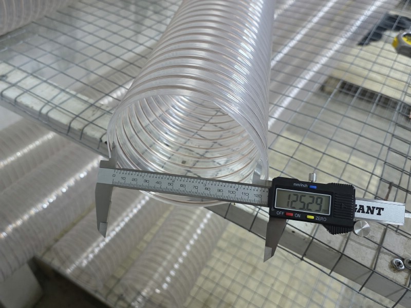Воздуховод полиуретановый 125 мм TPU-0.7— популярный размер для аспирационных и пылеудаляющих систем на деревообрабатывающих и пищевых предприятиях. Прозрачная стенка толщиной 0,7 мм позволяет контролировать поток продукта, а стальная спираль защищает от раздавливания и помогает снять статический заряд при заземлении.