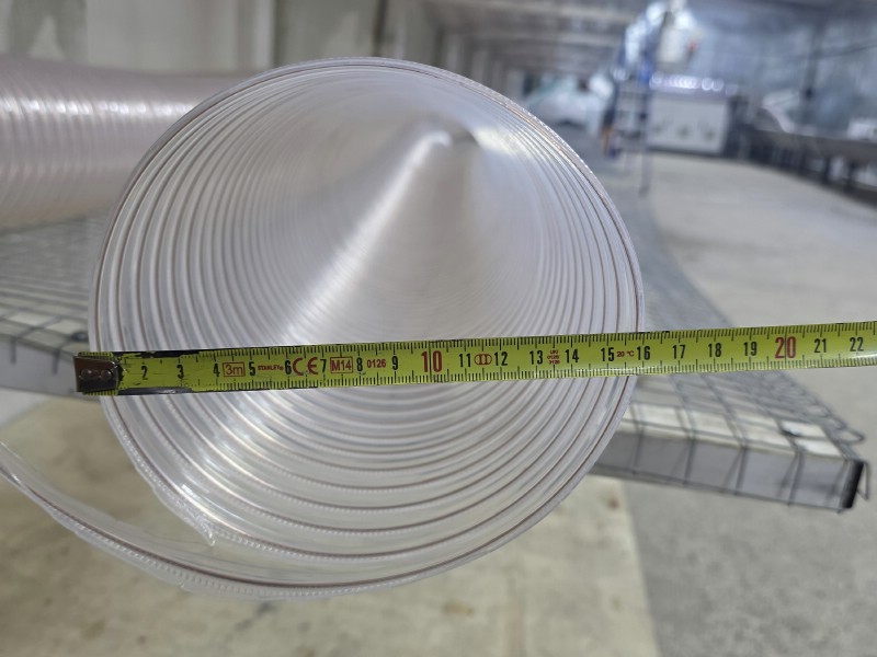 Воздуховод полиуретановый 160 мм TPU-0.7 используется в крупных аспирационных системах, в том числе для деревообработки, пищевой промышленности и общепромышленных установок. Толщина стенки 0,7 мм обеспечивает баланс между гибкостью и прочностью, а прозрачный TPU позволяет контролировать поток продукта.